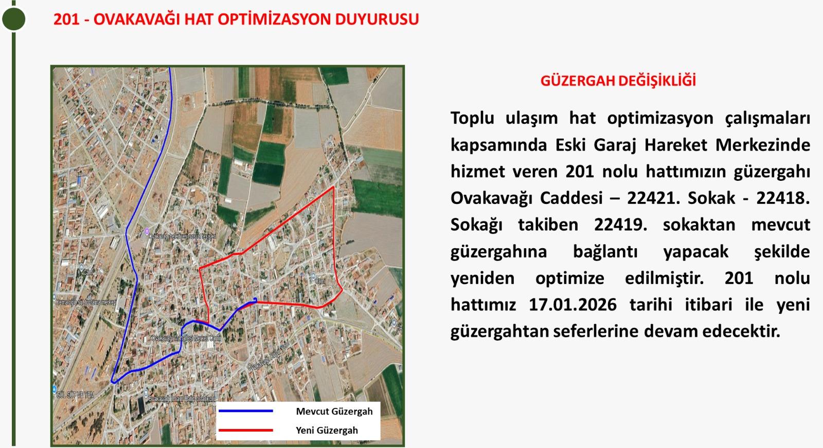 201-OVAKAVAĞI HAT OPTİMİZASYONU DUYURUSU