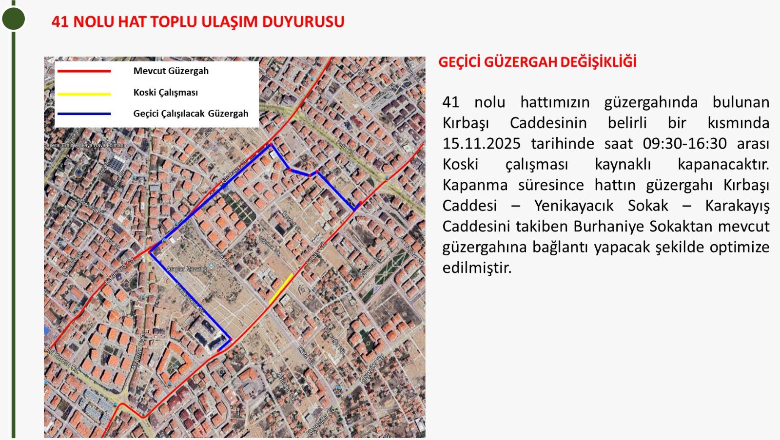 41 NOLU HAT TOPLU ULAŞIM DUYURUSU